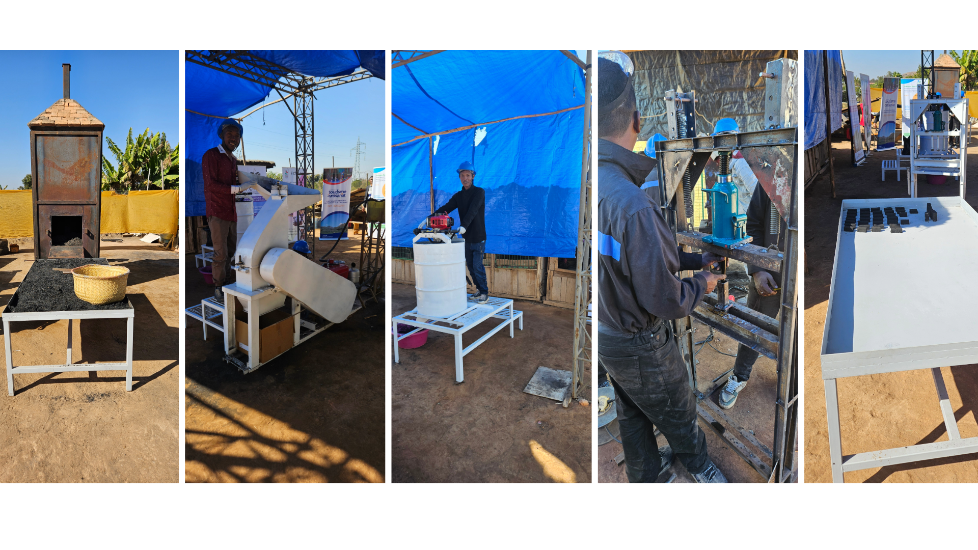 In der Hauptstadt Antananarivo führte ich eine 4-wöchige, intensive Schulung für lokale Metall-Handwerker*innen durch, um deren Fähigkeiten in der Herstellung von Maschinen zur Pflanzenkohleproduktion zu verbessern. Zuerst haben wir 5 Prototypen aus lokal verfügbaren Materialien entwickelt und gebaut: